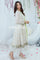 Presenting a premium chikankari pishwas, exquisitely embellished with intricate handwork of resham, pearls, and mirrors that radiate timeless elegance. The silhouette is enhanced with signature mirror lace and a graceful double-layered net frill, offering movement and depth — a refined choice for any celebratory moment.