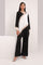 The outfit is paired with slitted wide-leg pants, adding a contemporary and stylish element to the look, making it perfect for various occasions.