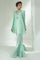 An elegant silhouette in a refreshing sea green hue, this outfit is crafted from lightweight georgette and adorned with delicate handwork of pearls, crystals, and sequins along the neckline.