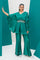 Get your style with our stunning butterfly cape, crafted from luxurious pure sheesha silk. This piece features a meticulously handcrafted green and white belt adorned with hanging pearl details, perfectly paired with boot cut pants. Ideal for special occasions, this ensemble combines elegance with comfort.