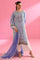 The Delphinium tunic features a long, straight silhouette in a serene light blue shade, crafted from pure raw silk. It showcases exquisite hand embellishments of pearls, sequins, and stones. Paired with culotte pants, it includes a delicately lace-adorned dupatta made from tissue crepe silk.