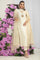 Turn heads this festive season with this luxurious sheesha silk ensemble, radiating soft glamour in a timeless beige hue. The highlight of the silhouette is its statement cowl sleeves, crafted from embroidered sequin-zari organza, adding texture, fluidity, and refined drama.