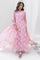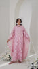 Step into delicate elegance with Frosted Rose—a long A-line shirt crafted in cutwork fabric, featuring chic pocket details and embellished with hand-applied crystals, sequins, and beads. The hem (front and back) and neckline are adorned with embroidered organza lace, while the neckline sparkles with intricate bead, sequin, and crystal detailing. Paired with straight capri pants in Korean raw silk and a chiffon dupatta enhanced with 3D floral motifs adorned with sequins, crystals, and beads, this ensemble exudes romantic sophistication.