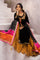 Premium black long silhouette shirt adorned with intricate zardozi, kora, dabka, and resham detailing on the neckline, daman, and sleeves. Paired with a crushed silk lehnga and multi-color chunri dupatta finished with lace and tassel accents.