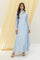 Embrace elegance with this premium long silhouette in pure sheesha silk canvas, featuring a stunning blue hue. Perfect for festive occasions, it showcases delicate crystal stones, kora, and dabka adornments on the neckline and sleeves.