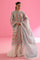 The Aqua Orchid tunic showcases a graceful long silhouette in a light sea green tone, highlighted by a hand-embroidered neckline motif embellished with pearls, kora, and sequins. Paired with crushed flared pants, it features an ombré tissue silk dupatta, beautifully finished with intricate cutwork lace.