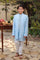Introducing a premium kurta in a serene blue hue, crafted from soft cotton fabric for ultimate comfort and style. This elegant piece is paired with classic white pants, creating a sophisticated look. The ensemble is enhanced by a stunning Prince coat made from poly raw silk, beautifully embellished with intricate resham embroidery and sequins. Perfect for festive occasions and formal events, this outfit combines traditional elegance with modern flair.