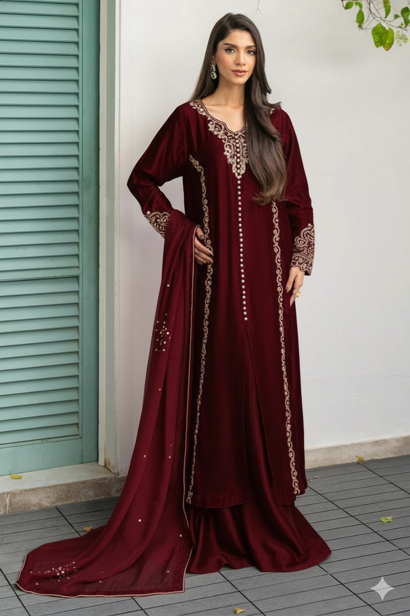 Fabric: Velvet (Shirt & Pants), Medium Silk (Dupatta)