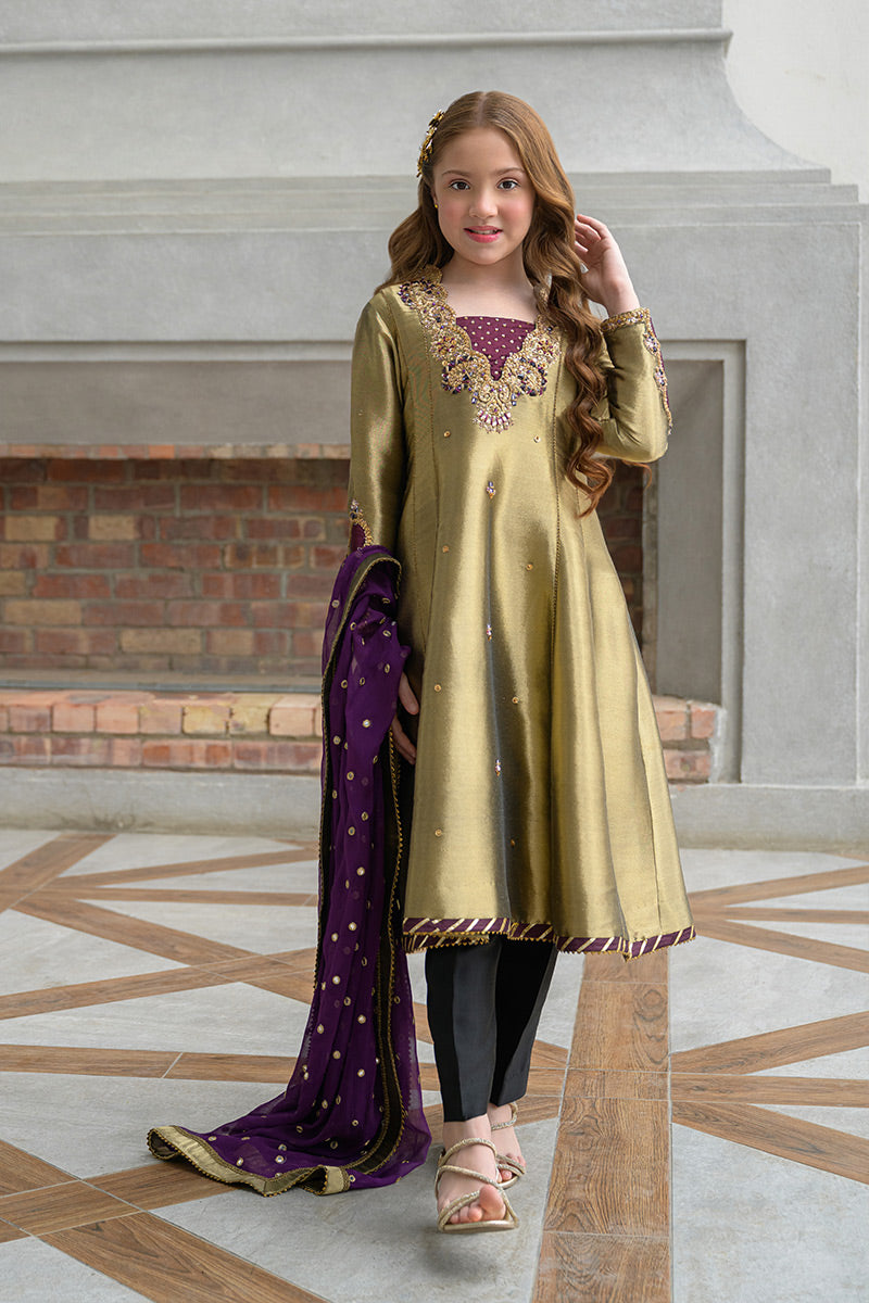 Fabric: Pure Lama Silk (Frock), Shisha Silk (Pants), Booti Chiffon (Dupatta)