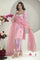 This outfit comes with lace-detailed shalwar and a printed organza dupatta, beautifully adorned with laces and tassels, completing the ensemble with elegance.